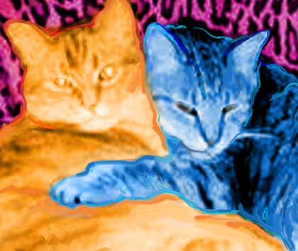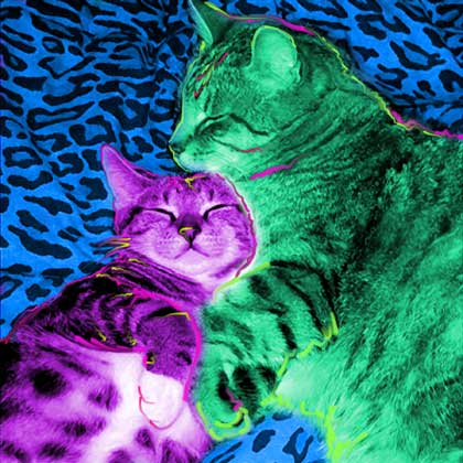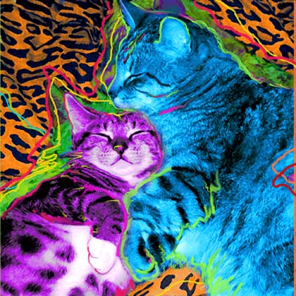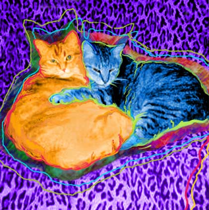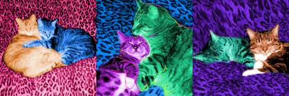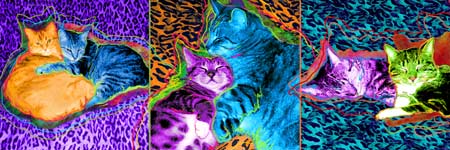 Notes: Cats in first panel had a very, very low resolution image provided, and when it was enlarged to fit this size format the detail and texture of the image suffered, see sample: