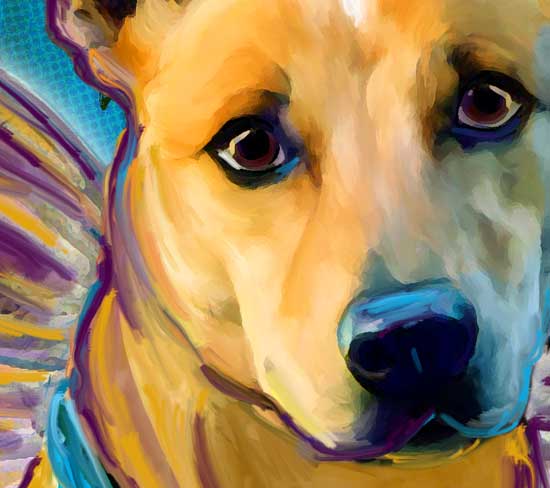 Client update requests: Remove fancy holiday collar and add more color to pup.